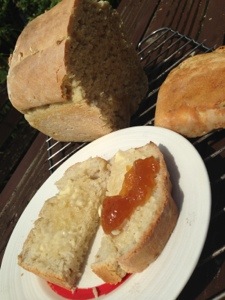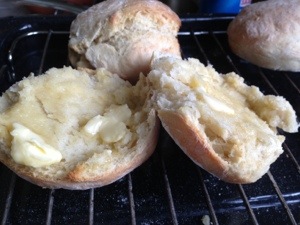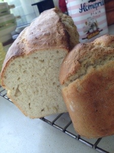 Without kneading, or proving, or knocking back (all things that I’ve hated about bread making) I had perfect rolls which took 10 mins and a loaf that was delicious when toasted but a bit too springy as bread. Johnny Bloody Mountain Tweeted the word ‘Cakey?’ to me when I posted a picture of the bread. This annoyed me enough to work out why it was a bit too cakey and springy even though the rolls made with the same mix were perfect. We (Ged the science fiend) and I decided that the only variable was steam. I repeated the loaf with a smaller tin and it was perfect. So stick that it your cake hole, Mountain.