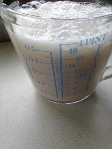 Leave for 10 minutes until frothy then fill to 500ml level.
