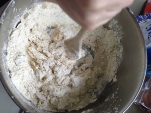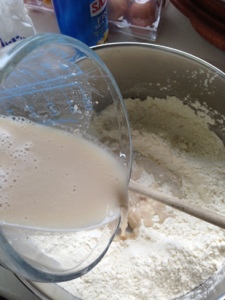 You don’t have to be too exact with this. If it looks too dry, add more water. Too wet, add more flour.