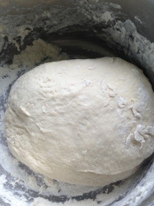 When it comes together in a ball and you can push your finger in without the dough sticking to it, then it’s ready.