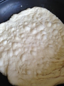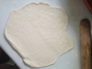 20140618-095555.jpg Roll out the first ball into an approximate circle that will fit into your frying pan.