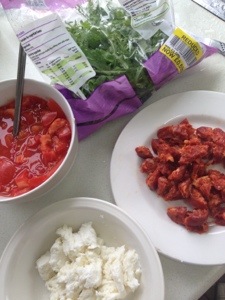 Zoe wanted mozzarella and rocket (reduced price). Joe wanted mozzarella and chorizo.