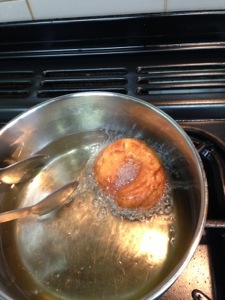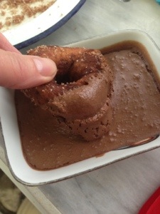 Then I got really silly and thought I’d mix a bit of sugar and cinnamon into the dough and fry it to see if it resembled doughnuts (which should be made with milk and butter). They were a bit bloody lovely. Especially when dipped in the failed Heston Blumenthal milk chocolate mousse. More on that in the next post.