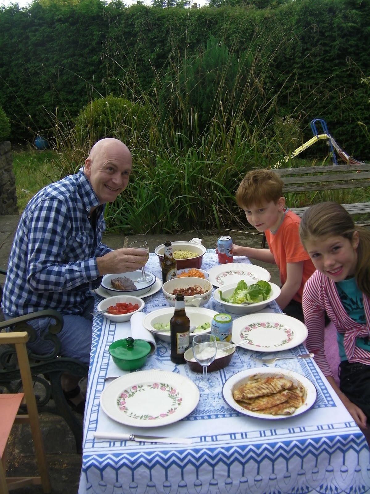Sunday also saw the last day of the summer so I dragged everyone outside to eat a lunch of griddled turkey steaks, cous cous and chickpea salad with sundried tomatoes, red onions and thyme.