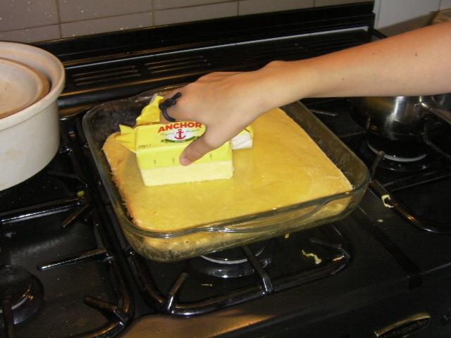 It was 9.55pm before the bloody thing set. It looked like a rubbery omelette so we rubbed butter over it and whacked it back in at top heat for another ten minutes.