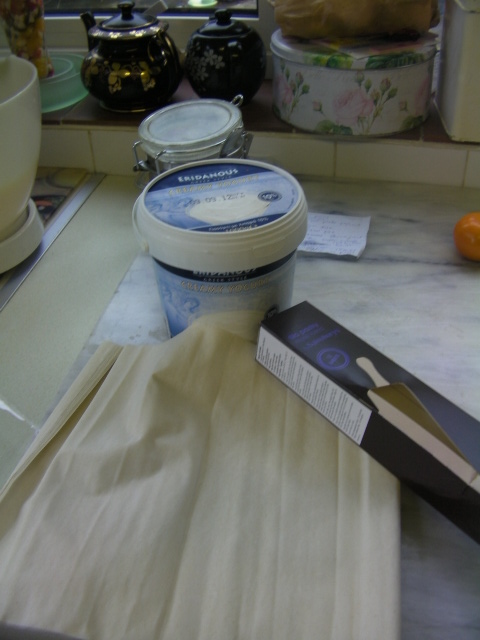 Next, we tore up the filo and threw it into the very watery egg/sugar/lemon mix. We hoped beyond hope that a miracle would now occur and that the filo would swell up the mix ready for baking. Nope. So we added 4 heaped tablespoons of flour. And then the yoghurt.