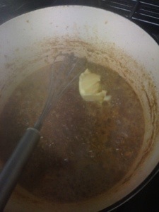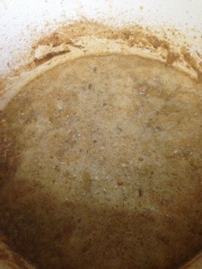 20140206-082619.jpg It now looked awful, as you can see. It was a big scummy mess. I could have thrown it away but food waste is against the rules so I puréed it with the stick whizzer and boiled it up with a bit of double cream. It was too sweet so I splashed in a bit of vinegar, whisked it up and yee ha! I had a sauce that everyone, including my kids and the Slinger’s loved. Even me and God know’s I’m hard to please.