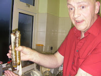 That added up to a bit too much creative culinarism for my liking. ‘Spooks’ are razor clams. He’s brought both the clams and the tails home before and spent hours messing about, poaching ’em, frying ’em. The spooks were a bit rubbery and rather tasteless so I was surprised he wanted to eat them again. And on their last visit, the pig’s tails exploded in a nasty fashion and burned through Ged’s best shirt, scarring him for life. They tasted better than the spooks though.