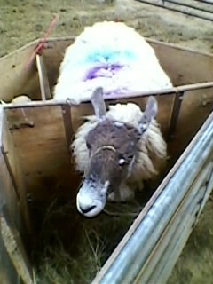 This here gaudily daubed sheep in the picture had just delivered a still born baby which must have put a bit of a damper on the ‘Give Thanks for Safe Delivery’ service.