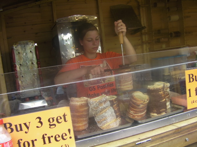 Then there were the curious chimney cakes which were a yeast dough, layered with butter, rolled and wrapped around a hollow metal cylinder and then cooked infront of one of those donner kebab type things.